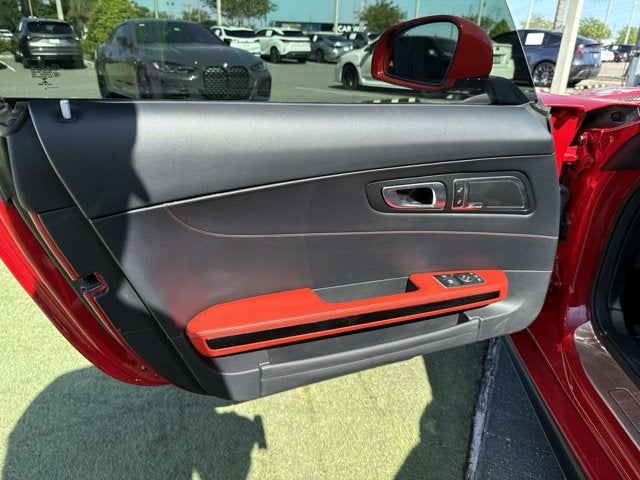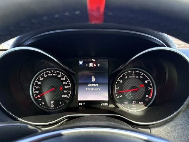 When new, this car carried a $124,760 MSRP . Those options include the AMG Aerodynamic Package at $2,850, which adds a front splitter, side sills, and a more aggressive rear diffuser; the AMG Performance Exhaust System at $1,800, which transforms the V8's soundtrack from reserved to theatrical; the AMG Classic Red and Black Nappa Leather interior at $1,900; the Burmester Surround Sound System at $1,300; the Panorama Roof at $1,260; 19 and 20-inch AMG Split 5-spoke wheels in silver and titanium at $1,000; KEYLESS-GO at $900; the Lane Tracking Package at $875; and AMG Black Piano Lacquer interior trim at $750. The AMG Performance Steering Wheel in full Nappa leather, AMG-compound summer high-performance tires, and delivery charges round out the build. It is a fully optioned example in every meaningful way.