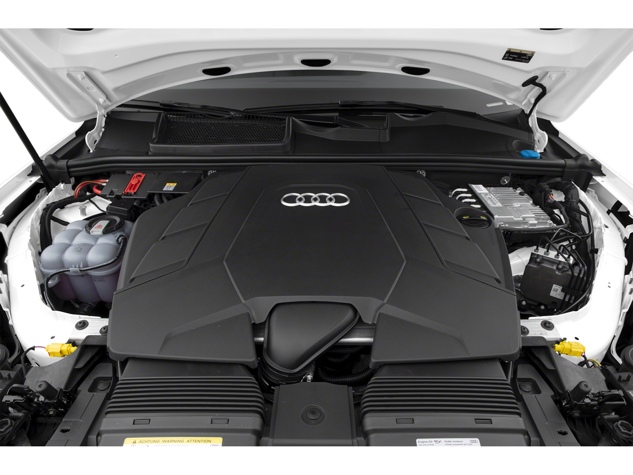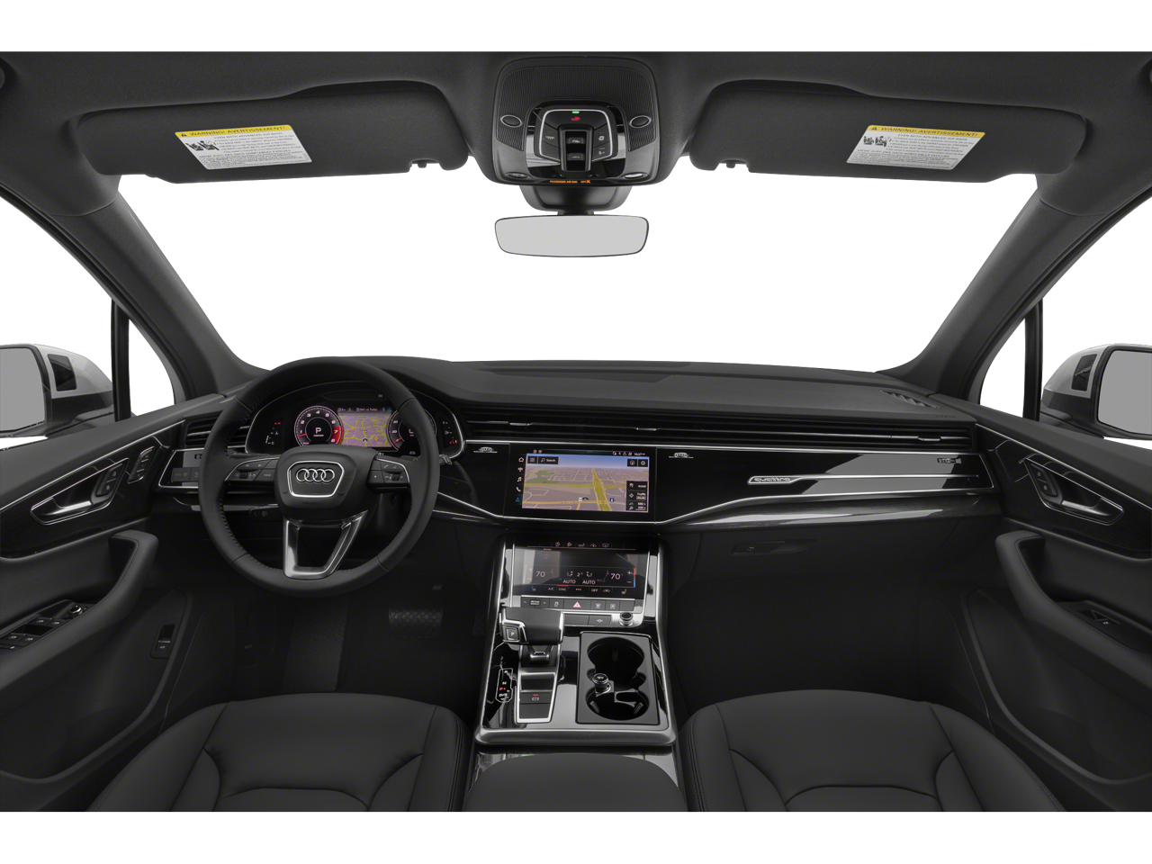 10 Speakers, 3.204 Axle Ratio, 3rd row seats: bench, 4-Wheel Disc Brakes, ABS brakes, Air Conditioning, Alloy wheels, AM/FM radio: SiriusXM, Audi smartphone interface (Apple CarPlay/Android Auto), Auto High-beam Headlights, Auto-dimming door mirrors, Auto-dimming Rear-View mirror, Automatic temperature control, Brake assist, Bumpers: body-color, Compass, Delay-off headlights, Driver door bin, Driver vanity mirror, Dual front impact airbags, Dual front side impact airbags, Electronic Stability Control, Emergency communication system: Audi connect CARE, PRIME & PLUS, Exterior Parking Camera Rear, Four wheel independent suspension, Front anti-roll bar, Front Bucket Seats, Front Center Armrest, Front dual zone A/C, Front fog lights, Front reading lights, Fully automatic headlights, Garage door transmitter: HomeLink, Genuine wood door panel insert, Heated door mirrors, Heated Front Bucket Seats, Heated front seats, Illuminated entry, Leather Seating Surfaces, Leather Shift Knob, Leather steering wheel, Low tire pressure warning, Memory seat, Navigation system: Audi MMI Navigation plus with Touch Response, Occupant sensing airbag, Outside temperature display, Overhead airbag, Overhead console, Panic alarm, Passenger door bin, Passenger vanity mirror, Power door mirrors, Power driver seat, Power Liftgate, Power moonroof: Panoramic, Power passenger seat, Power steering, Power windows, Radio data system, Radio: Audi Sound System, Rain sensing wipers, Rear air conditioning, Rear anti-roll bar, Rear fog lights, Rear reading lights, Rear seat center armrest, Rear side impact airbag, Rear window defroster, Rear window wiper, Reclining 3rd row seat, Remote keyless entry, Roof rack: rails only, Security system, Speed control, Speed-sensing steering, Split folding rear seat, Spoiler, Steering wheel memory, Steering wheel mounted audio controls, Tachometer, Telescoping steering wheel, Tilt steering wheel, Traction control, Trip computer, Turn signal indicator mirrors, Variably intermittent wipers, Wheels: 19" 5-Arm-Star Design.
