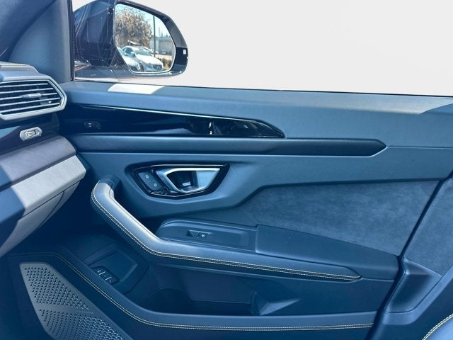 Power comes from a 4.0L twin-turbocharged V8 paired with an 8-speed automatic transmission and permanent all-wheel drive, delivering the blend of straight-line performance, daily usability, and unmistakable Lamborghini presence the Urus is known for. The exterior is accented by 23" Taigete shiny wheels, yellow brake calipers, black matte exhaust tips, and multiple High Gloss styling elements, while the interior features contrast stitching, Q-Citura leather detailing, ambient lighting, and a panoramic glass roof.