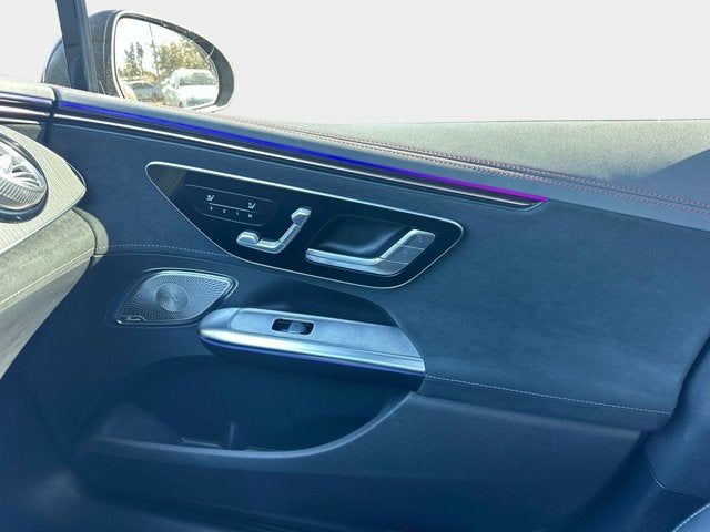 Finished in MANUFAKTUR Graphite Grey Magno over AMG Line Black / Space Grey leather, this EQE features rear-axle steering, multicontour massaging seats, head-up display, four-zone climate control, and a full suite of active safety and driver assistance systems. Power is delivered through dual electric motors and 4MATIC all-wheel drive, while 20 AMG aero wheels complete the aggressive yet refined appearance.