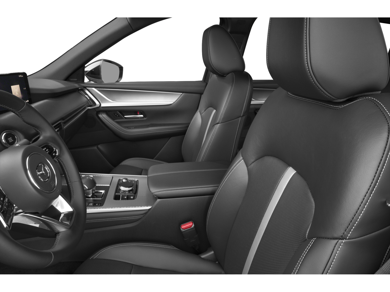 12 Speakers, 4-Wheel Disc Brakes, ABS brakes, Air Conditioning, All Weather Floor Mats, Alloy wheels, AM/FM radio: SiriusXM, Auto High-beam Headlights, Auto-dimming door mirrors, Auto-dimming Rear-View mirror, Automatic temperature control, Brake assist, Bumpers: body-color, Compass, Delay-off headlights, Driver door bin, Driver vanity mirror, Dual front impact airbags, Dual front side impact airbags, E911 Automatic Emergency Notification, Electronic Stability Control, Emergency communication system: MAZDA CONNECT, Four wheel independent suspension, Front anti-roll bar, Front Bucket Seats, Front Center Armrest w/Storage, Front dual zone A/C, Front reading lights, Fully automatic headlights, Garage door transmitter: HomeLink, Heads-Up Display, Heated door mirrors, Heated front seats, Heated rear seats, Heated steering wheel, Heated/Ventilated Front Bucket Seats, Illuminated entry, Infotainment System Voice Command, Knee airbag, Leather Shift Knob, Leather steering wheel, Low tire pressure warning, Mazda Connected Services, Mazda Online Navigation, Memory seat, Nappa Leather Seat Trim, Navigation system: MAZDA CONNECT, Occupant sensing airbag, Outside temperature display, Overhead airbag, Overhead console, Panic alarm, Passenger door bin, Passenger vanity mirror, Power door mirrors, Power driver seat, Power Liftgate, Power moonroof, Power passenger seat, Power steering, Power windows, Radio Broadcast Data System Program Information, Radio data system, Radio: AM/FM with Bose Premium Audio Sound System, Rain sensing wipers, Rear air conditioning, Rear anti-roll bar, Rear reading lights, Rear seat center armrest, Rear window defroster, Rear window wiper, Remote keyless entry, Security system, SMS Text Message Audio Delivery and Reply, Speed control, Speed-sensing steering, Splash Guards, Split folding rear seat, Spoiler, Steering wheel mounted audio controls, Tachometer, Telescoping steering wheel, Tilt steering wheel, Traction control, Trip computer, Variably intermittent wipers, Ventilated front seats, Wheels: 21" x 9.5J Aluminum Alloy.